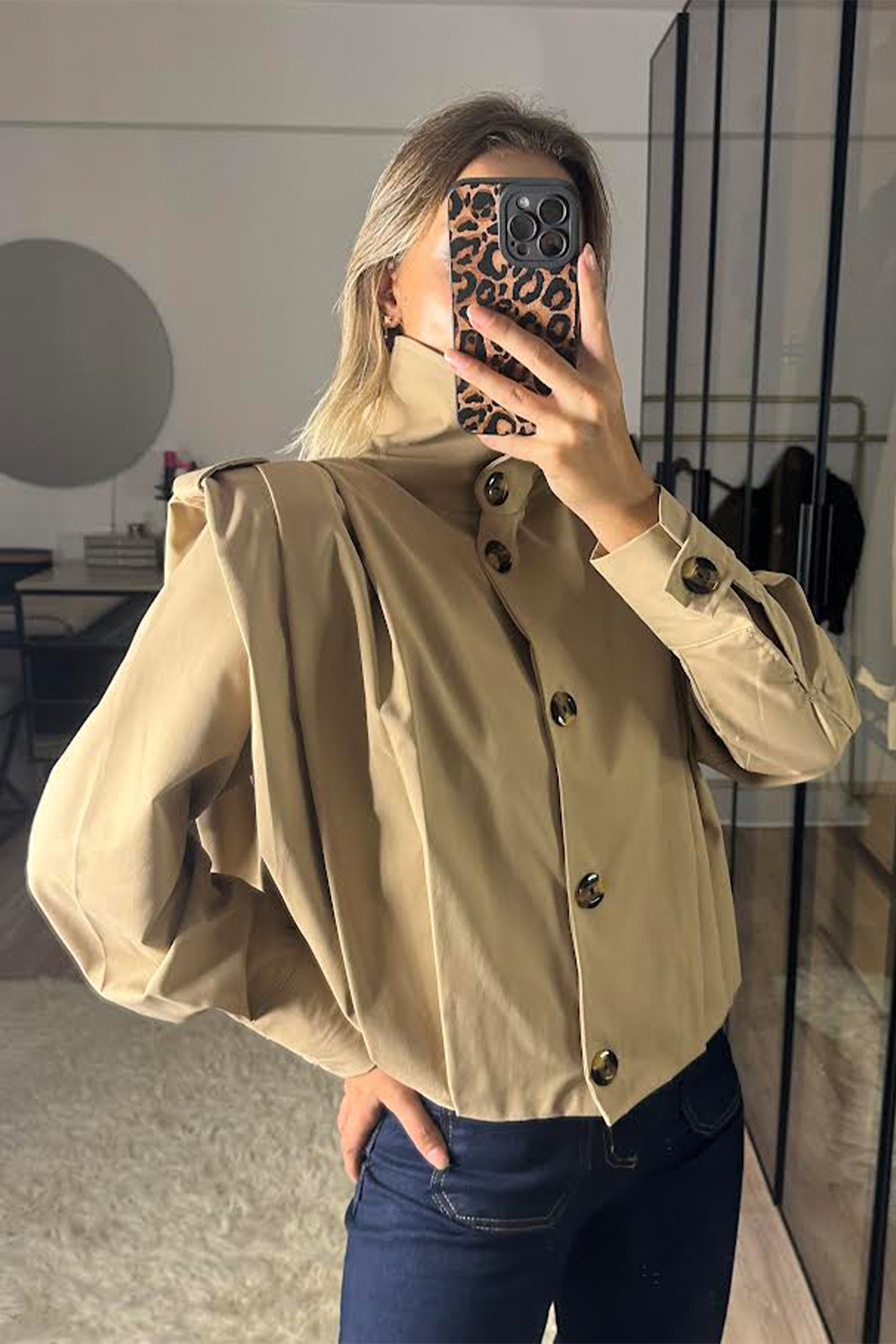 Aden Bej Pile Detaylı Vatkalı Viral Kısa Trençkot (Aden-Bej-S)