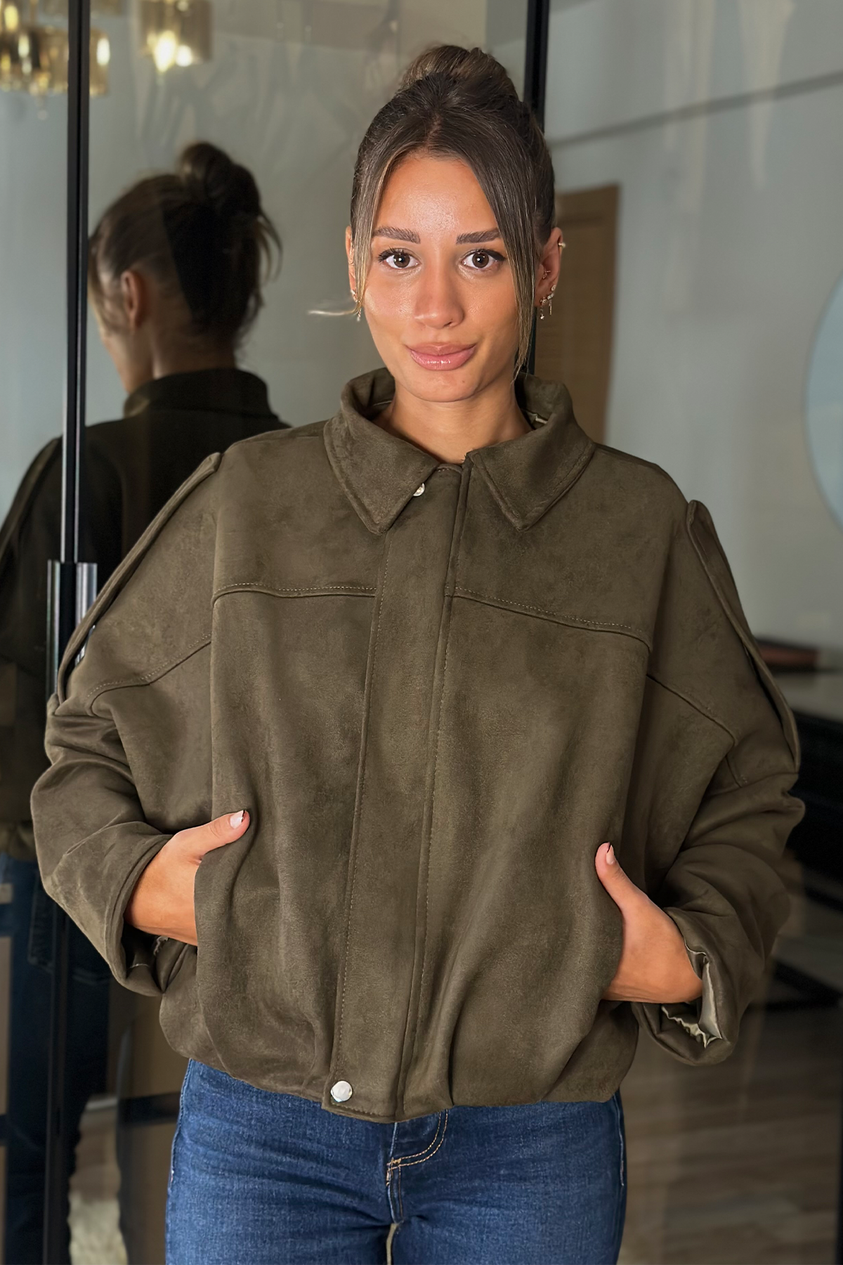 Alice Oversize Haki Bomber Viral Süet Ceket