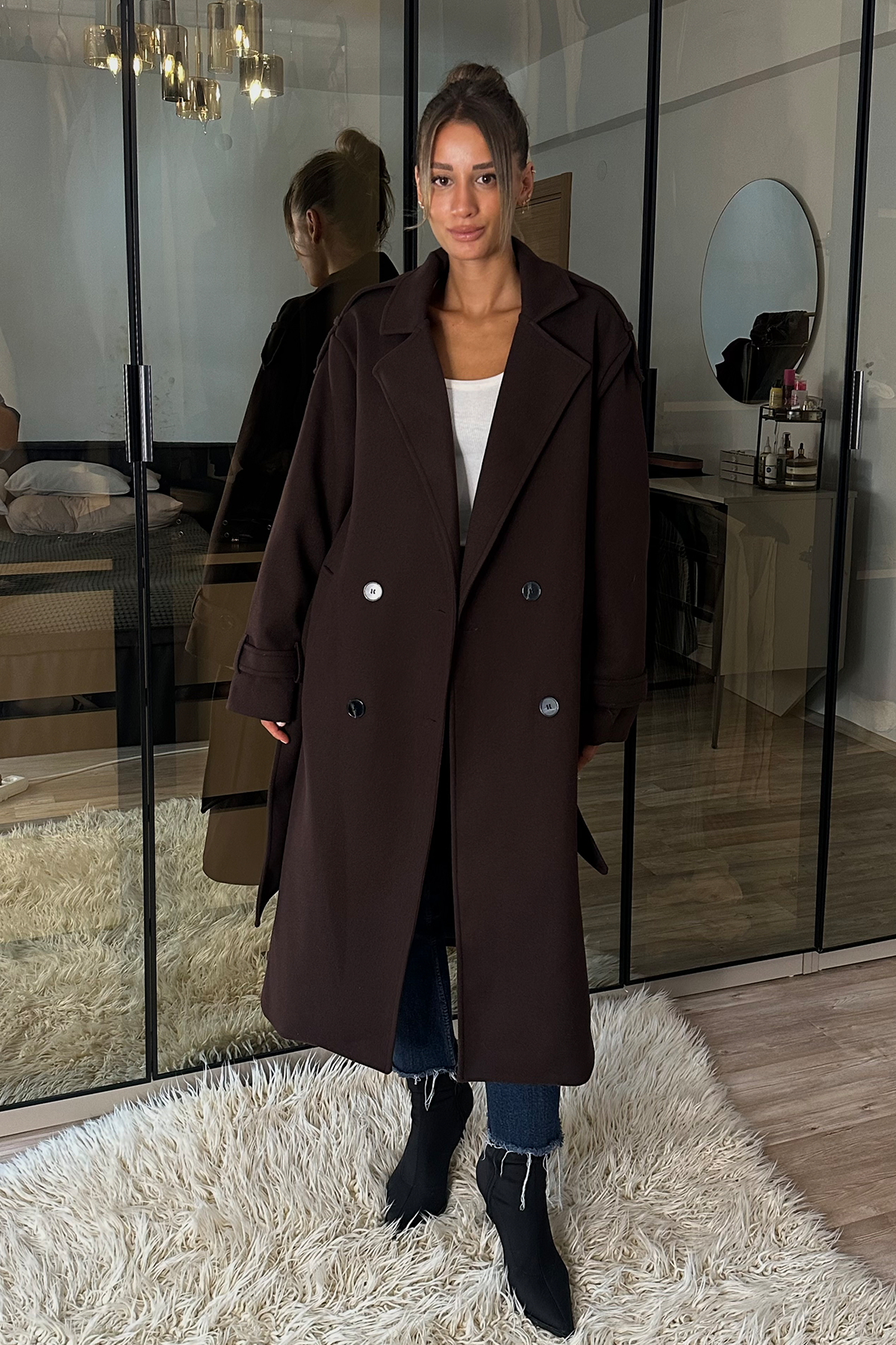 Laura Acı Kahve Kuşaklı Kaşe Kaban (Laura-Acı-Kahve-S)